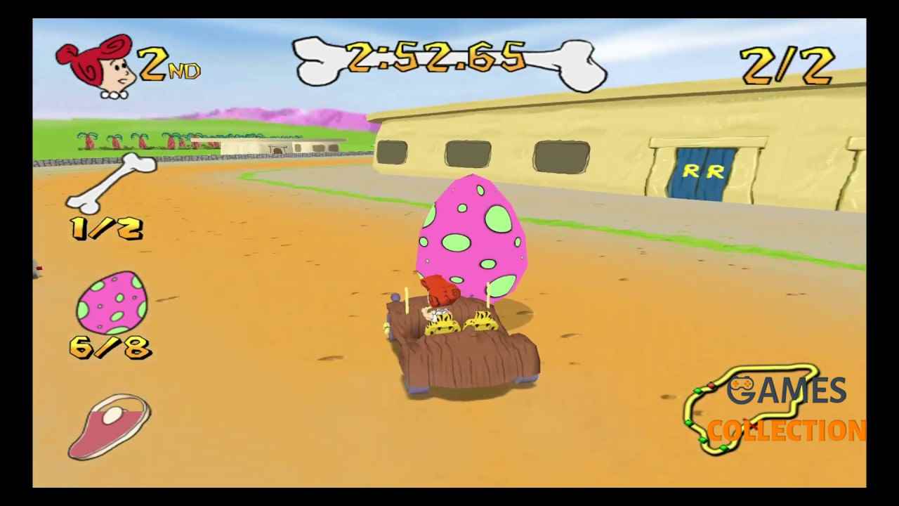 The Flintstones: Bedrock Racing (Play Station 2) быстро развивающееся удовольствие на всем пути в этой дикой гоночной игре, основанной на классической мультяшной комедии Ханны-Барберы! Фред и Барни должны соревноваться, чтобы узнать, у кого самая быстрая семья в Бедроке – и они пригласили вас прокатиться!